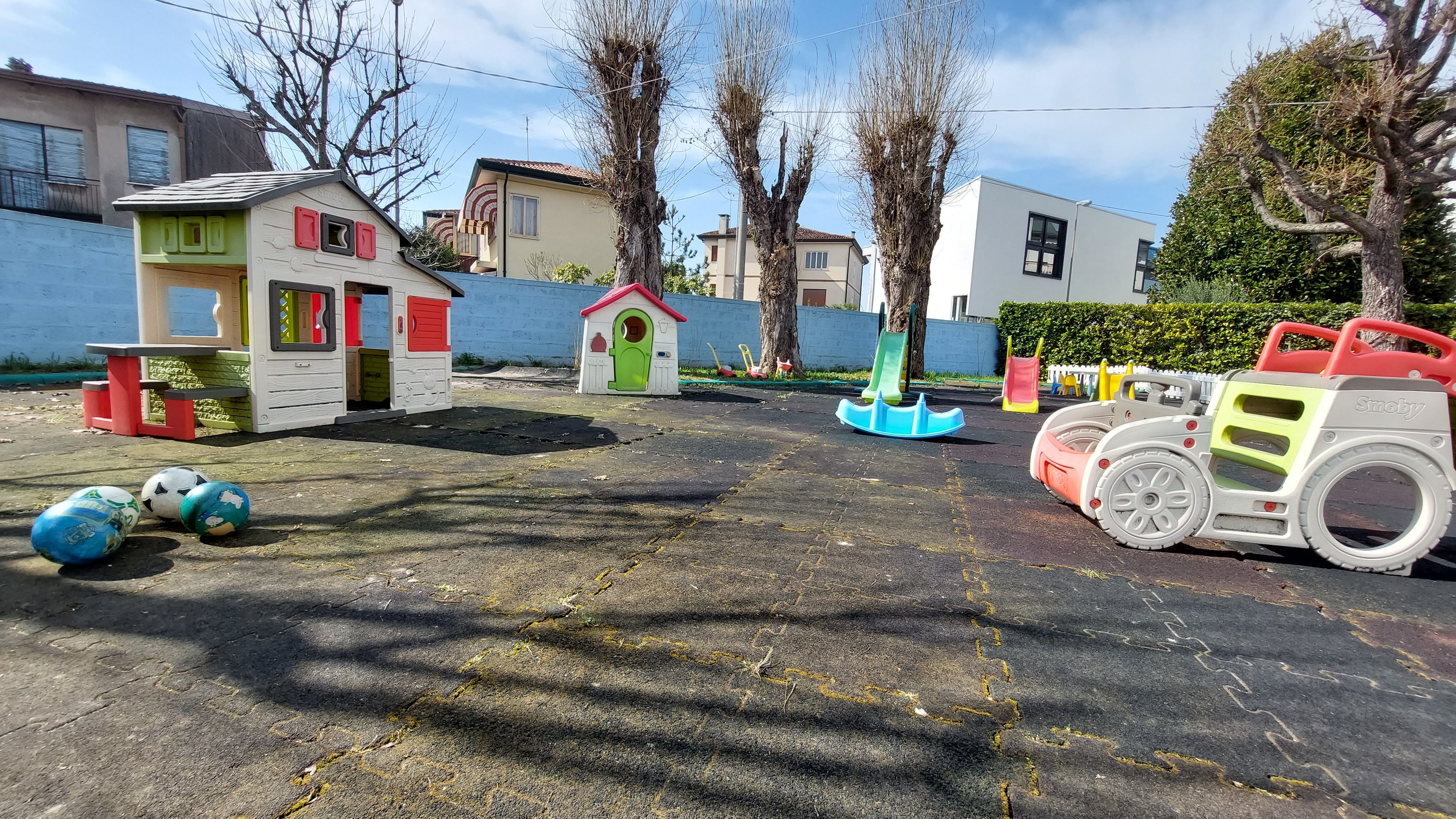 - Un grande giardino attrezzato e ricoperto con piastrelle antitrauma