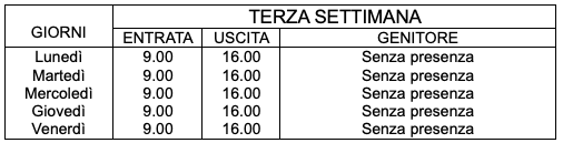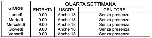 La giornata tipo all'interno della struttura è la seguente: